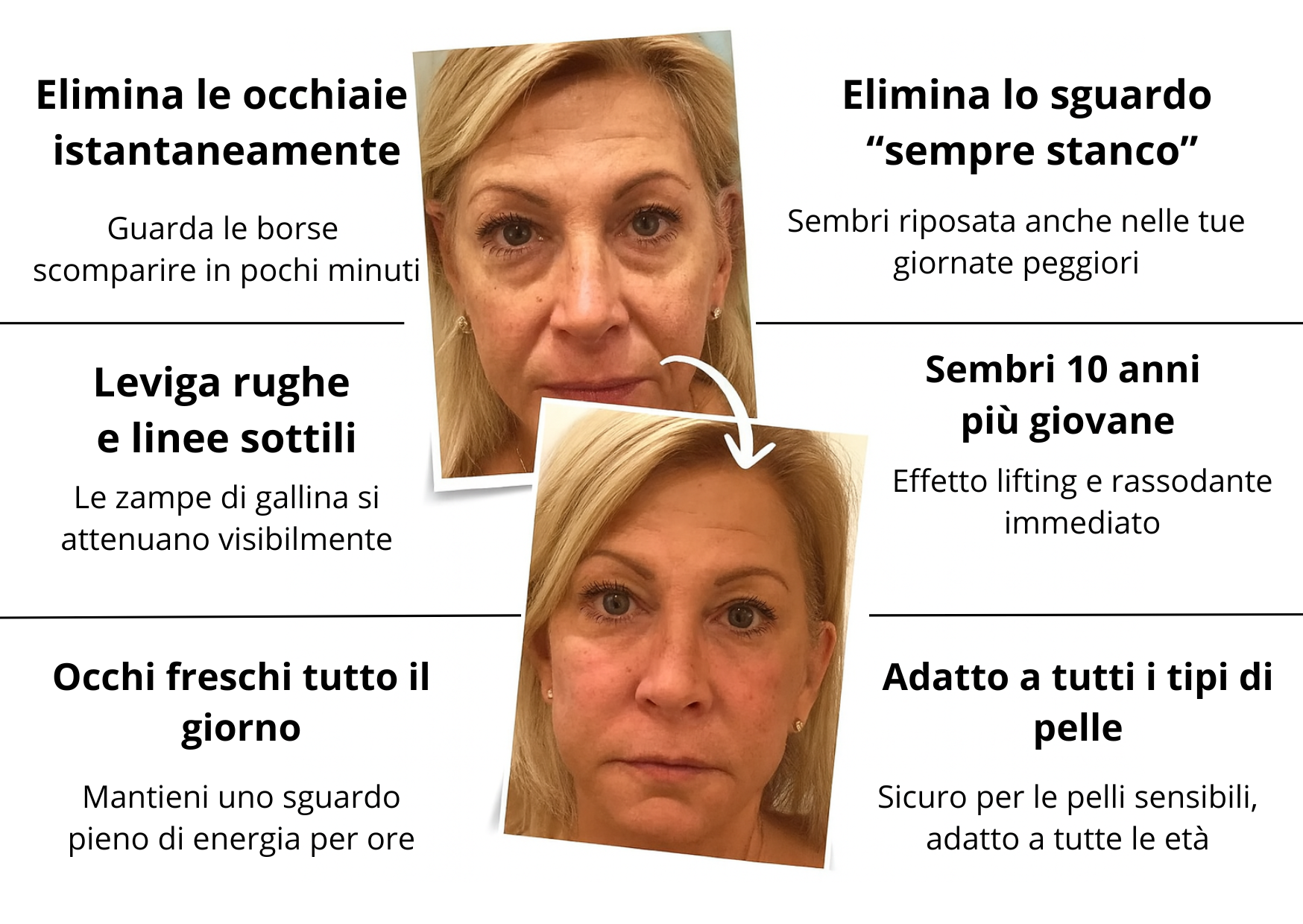 La pelle appare più liscia, le borse si attenuano e lo sguardo risulta immediatamente più riposato e giovane.
